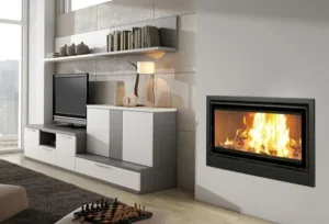 Chimenea de leña de estilo contemporáneo: Si prefieres un diseño más moderno, esta chimenea es una excelente opción. Con líneas limpias y un acabado de alta calidad, es ideal para hogares con una decoración más contemporánea.
